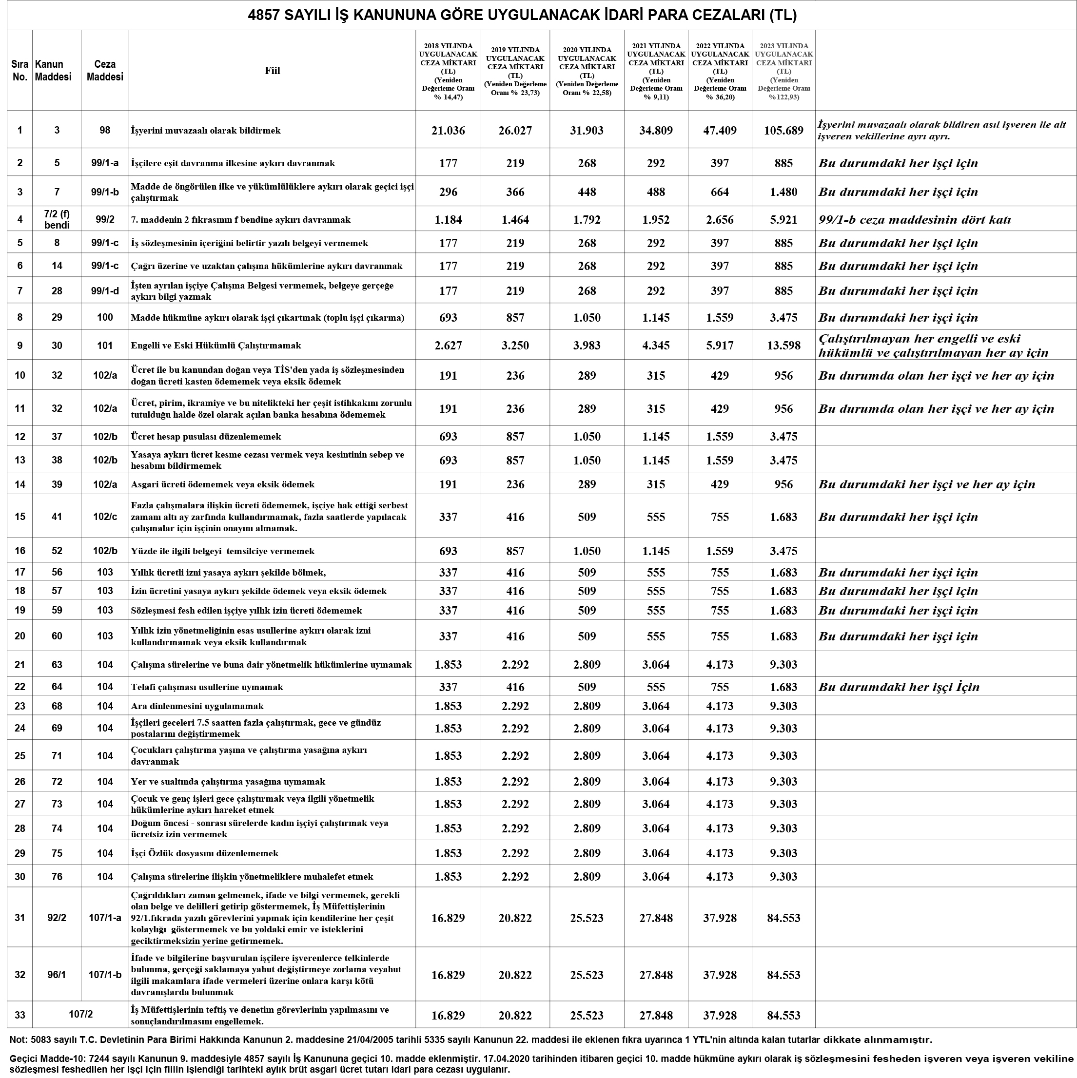 4857 Sayılı İş Kanunu İdari Para Cezaları